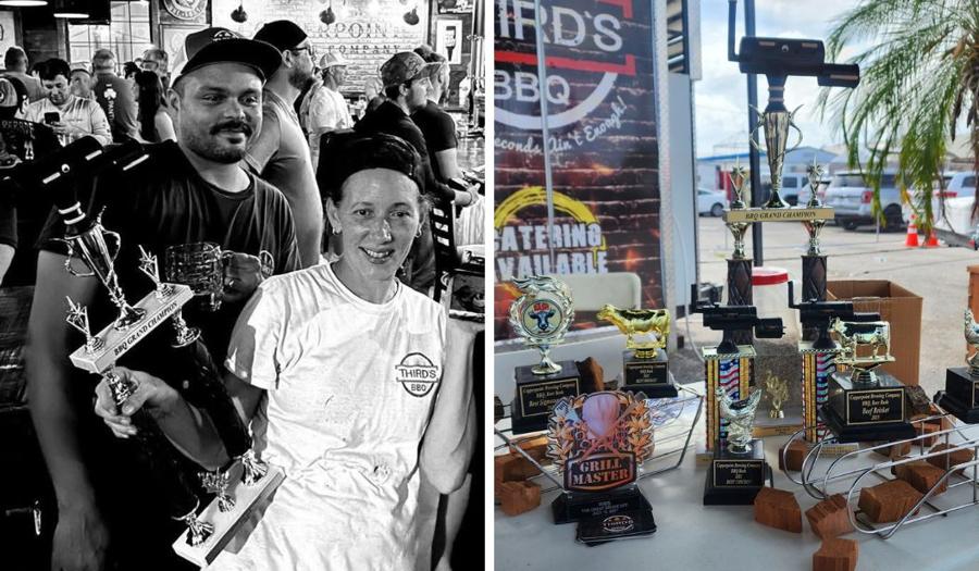 With Autumn's unwavering support and a lot of long hours, Trey went from backyard griller to award-winning pitmaster. Their commitment to quality and fresh, soul-cooked food has earned them a loyal following and a boatload of awards. Third's BBQ has consistently dominated local barbecue events, including honors for Best Brisket, Best Chicken, and Best Ribs at competitions all over South Florida.