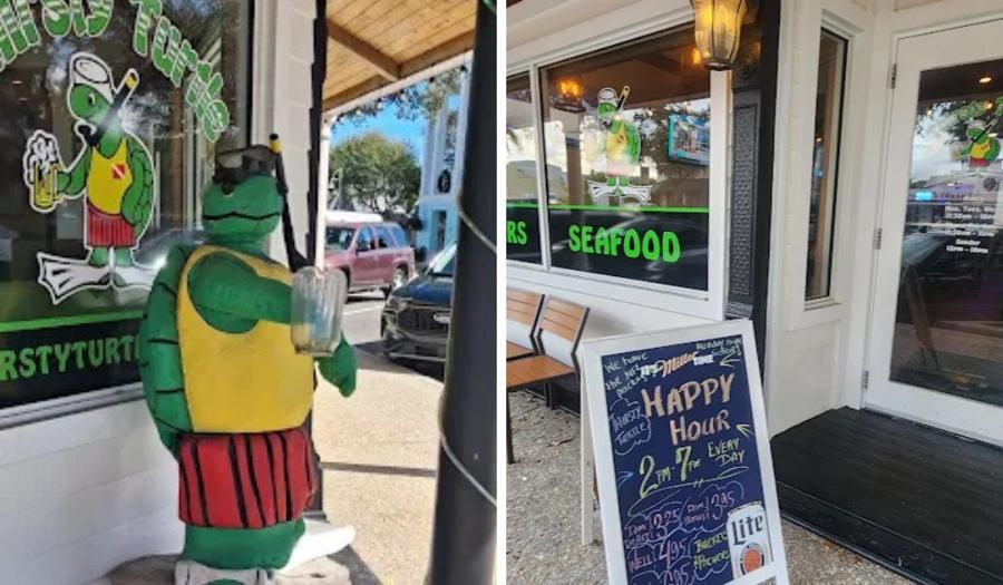 This location is full of "old Florida" charm with indoor and outdoor dining, and a welcoming bar with TVs for sports fans - making it a great place to unwind after a day at the beach. Stop by for some genuine small town hospitality and see why the Thirsty Turtle has been a community landmark for years.