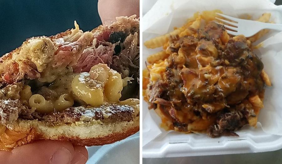 This is the place where pitmaster Scott Busick is is cooking up the most delicious ribs, brisket, burnt ends, pork, chicken and more.  Using a blend of wood and charcoal in his smoker, he cooks them LOW & SLOW.  The result is ridiculously tender meats and a great smoky flavor. Sauces and sides are all homemade. You might as well just order all of them because you're not gonna be able to decide whether you want the mac & cheese or the potato salad or the meaty baked beans or the fries. High on the Hog is food truck food at its best.  And don't forget the Smash Burger.  (Try it topped with pulled pork - OMG)