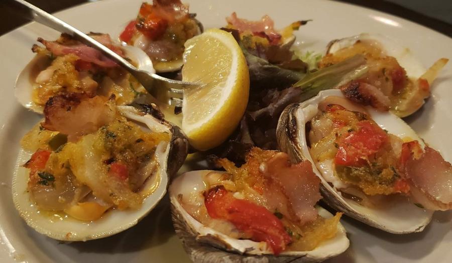 With the kitchen under the direction of Chef Angelos, you'll start with a complimentary loaf of freshly baked bread served with olive oil and roasted garlic for dipping.  But don't fill up too much because the portions are generous and you'll want to save room for their outrageous homemade Banana Cream Pie!  Chicken Scarpariello on the bone with sausage. House made Potato Gnocchi.  Rigatoni Bolognese with peas in a plum tomato sauce. The house special Grilled Pork Chop is a best seller and the Veal Russilino with prosciutto, mushrooms, and mozzarella over spinach with a Marsala sauce is a masterpiece! They serve exceptional, thin crust NJ/NY Style pizza in the lounge, and their version of Crab Cakes (Italian style with capers, artichokes and lemon) might be the best you've ever tasted!  Entrees are served with soup or salad and a side of pasta or vegetable, making Nick & Johnny's an extremely good value.